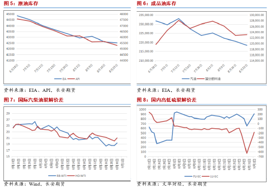 裂解价差方面,国际汽柴油在8月之中重心持续下移,这主要是由于北美市场成品油消费疲软所致,但内盘高低硫裂解则在8月大部分时间维持强势,并小幅上涨,但在月底时间受到整体供给侧趋宽的影响同步出现了大幅度的回调。预计本月之中,内盘高低硫裂解或短暂维持偏弱走势之后,于后半程时间逐步有所反弹,因此前半月时间或可考虑逢低布多裂解,在后半月之中逢高止盈离场;同时值得关注的是高低硫价差在近期持续走强,这或为多LU空FU持续带来一定的套利空间。